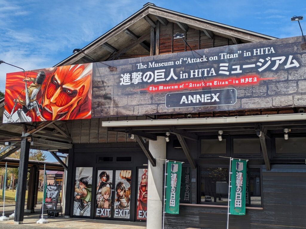 A short distance from the dam (accessible by car or taxi) is the Attack on Titan in HITA Museum, located within the “Michi-no-Eki (Roadside Station) Mizube no Sato Oyama.”