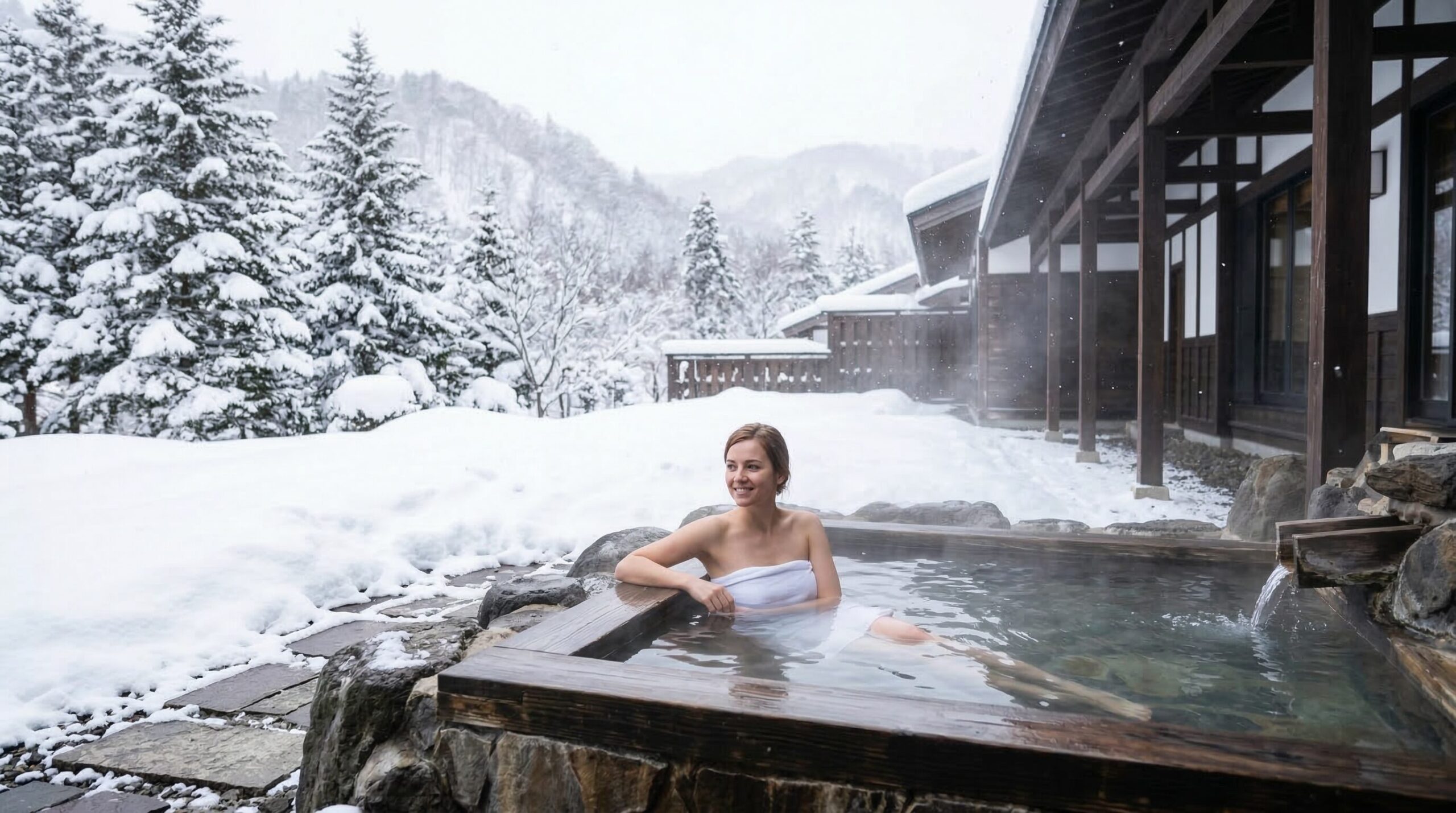 - Private Sulfur Baths: The highest-end properties offer private, open-air baths built from fragrant hinoki (Japanese cypress). The contrast between the stark white snow, the dark wood, and the opaque, milky-white thermal water is visually and physically striking.