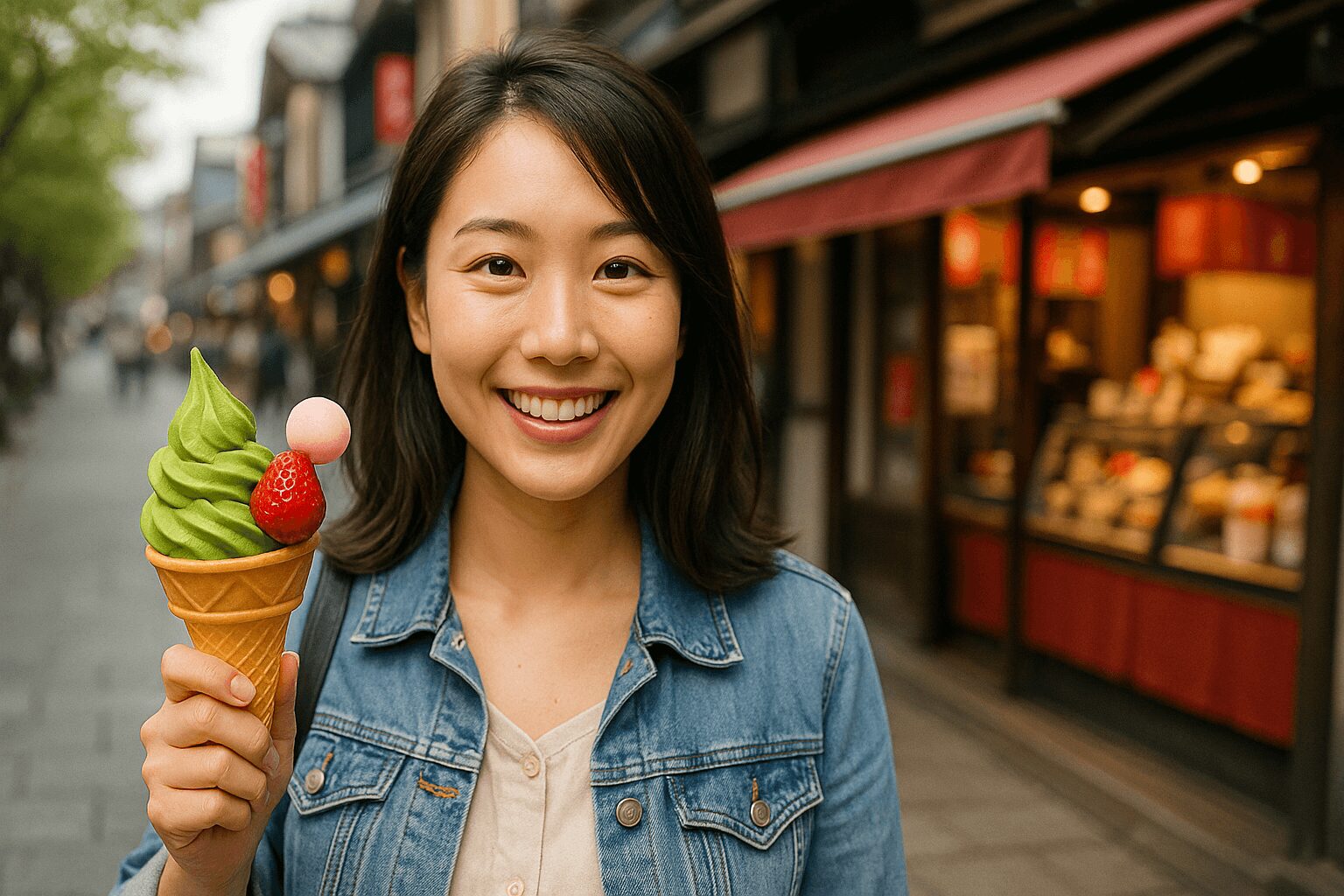• Soft-serve ice cream comes in creative flavors like matcha, hojicha, black sesame, or even gold leaf.