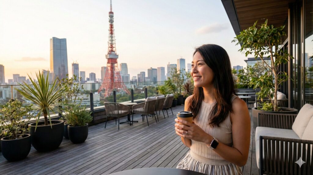 Unlike global mega-cities with crowded rooftops, Tokyo’s rooftop cafés offer tranquility—even in Shibuya or Ginza.